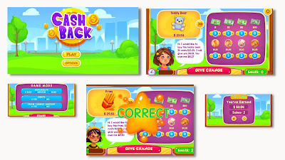 Cash back adalah permainan dimana pemain akan memberi pelanggan atau customer kembalian uang dengan menggunakan uang kertas dan koin. Menghitung berapa uang cash back yang seharusnya diberikan sebelum waktu yang tersedia habis.